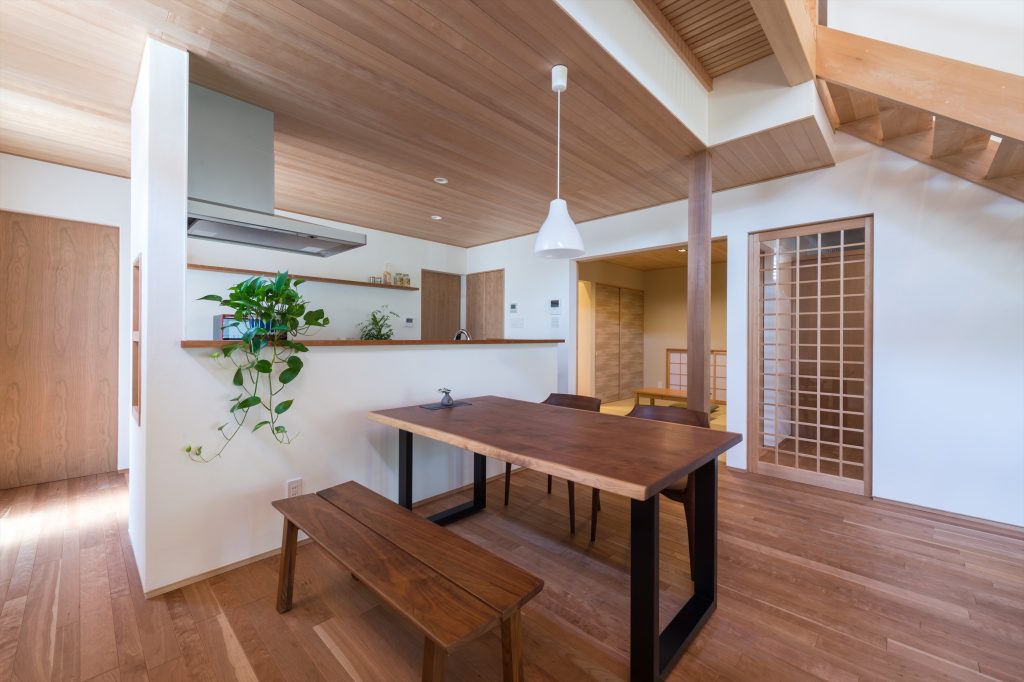 キッチンとテーブルを横並びにして食事の後の片付けがしやすく