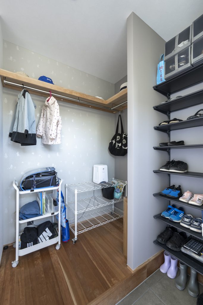 玄関から直接パントリーへつながる“買い物ラク動線”も人気