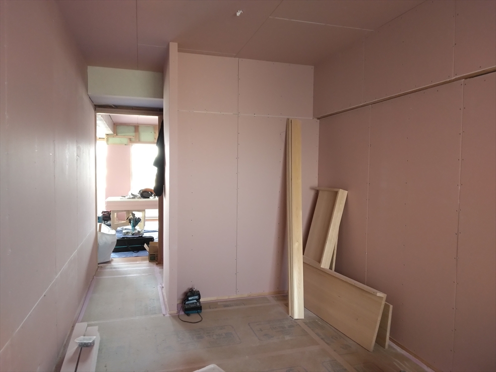 壁や天井の下地となる石膏ボードを貼っていきます!