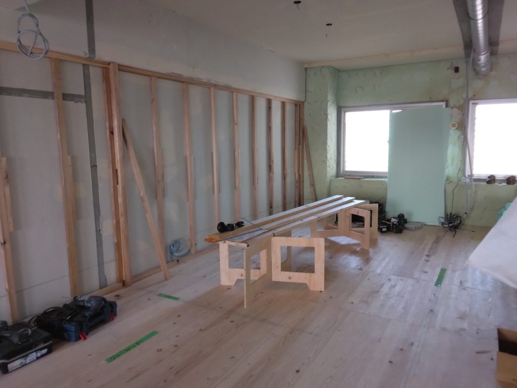 材料を室内に置く位置も、これからの作業動線を考えて決めています。